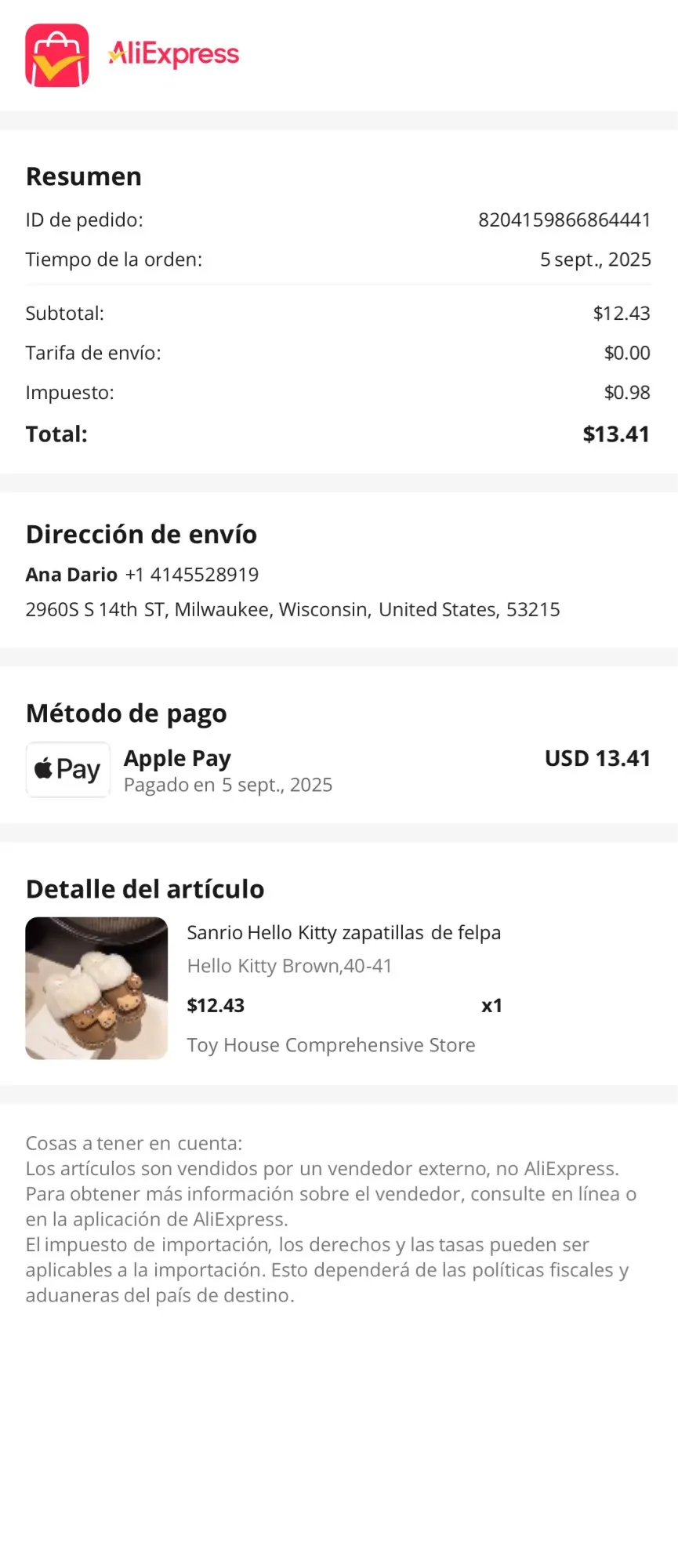 Homezy hellokitty slippers coffee brown